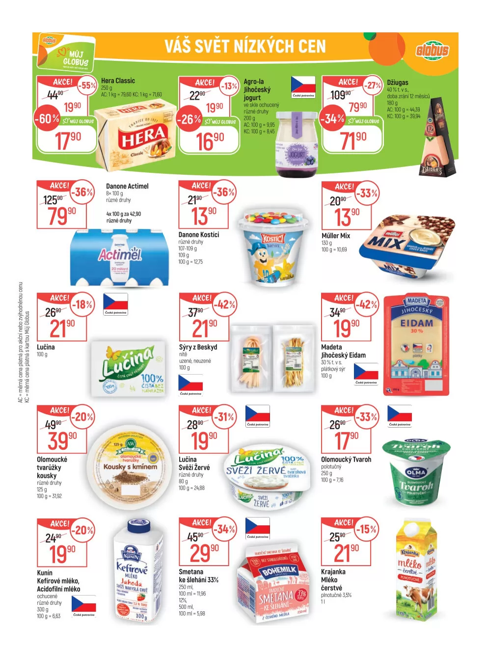 V akci jsou například Lučina 100 g, Olomoucké tvarůžky 125 g a Kunin kefírové mléko 300 g.