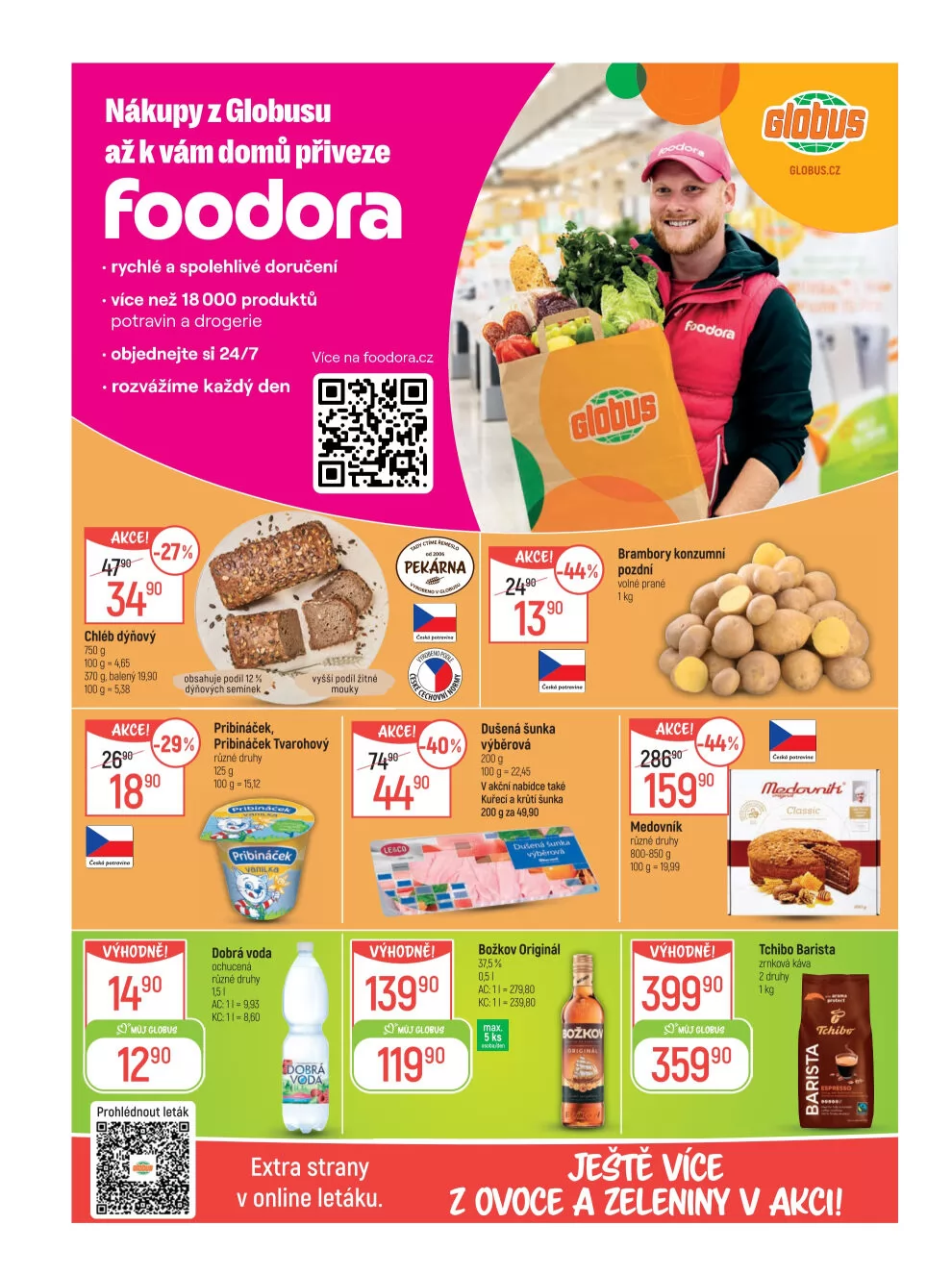 V letáku obchodu Globus najdete širokou nabídku produktů, které si můžete objednat a nechat si je přivézt až domů prostřednictvím Foodora. Nabízíme více než 18 000 produktů z potravin a drogerie, které si můžete objednávat 24/7 a rozvážíme každý den.