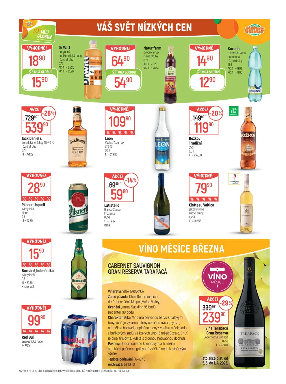 Mezi akčními položkami se objevují oblíbené nápoje jako Jack Daniel's, Pilsner Urquell a Bernard jedenáctka.