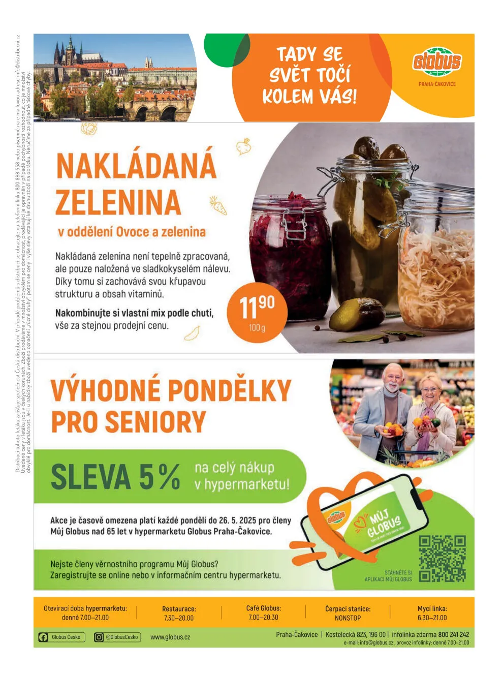Navíc, každý pondělí probíhá akce pro seniory nad 65 let, kdy mají možnost využít slevu na celý nákup v hypermarketu. Akce platí do 26.5.2025 a je určena pro členy věrnostního programu Můj Globus. Pokud ještě nejste členy, můžete se zaregistrovat online nebo v informačním centru hypermarketu.