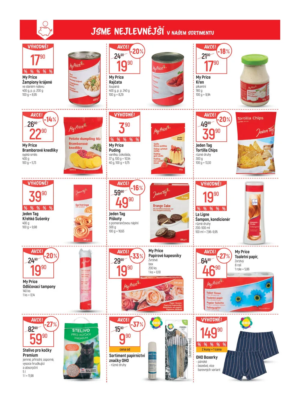 Mezi nimi jsou krájené žampiony v slaném nálevu za skvělou cenu 22,90 Kč.