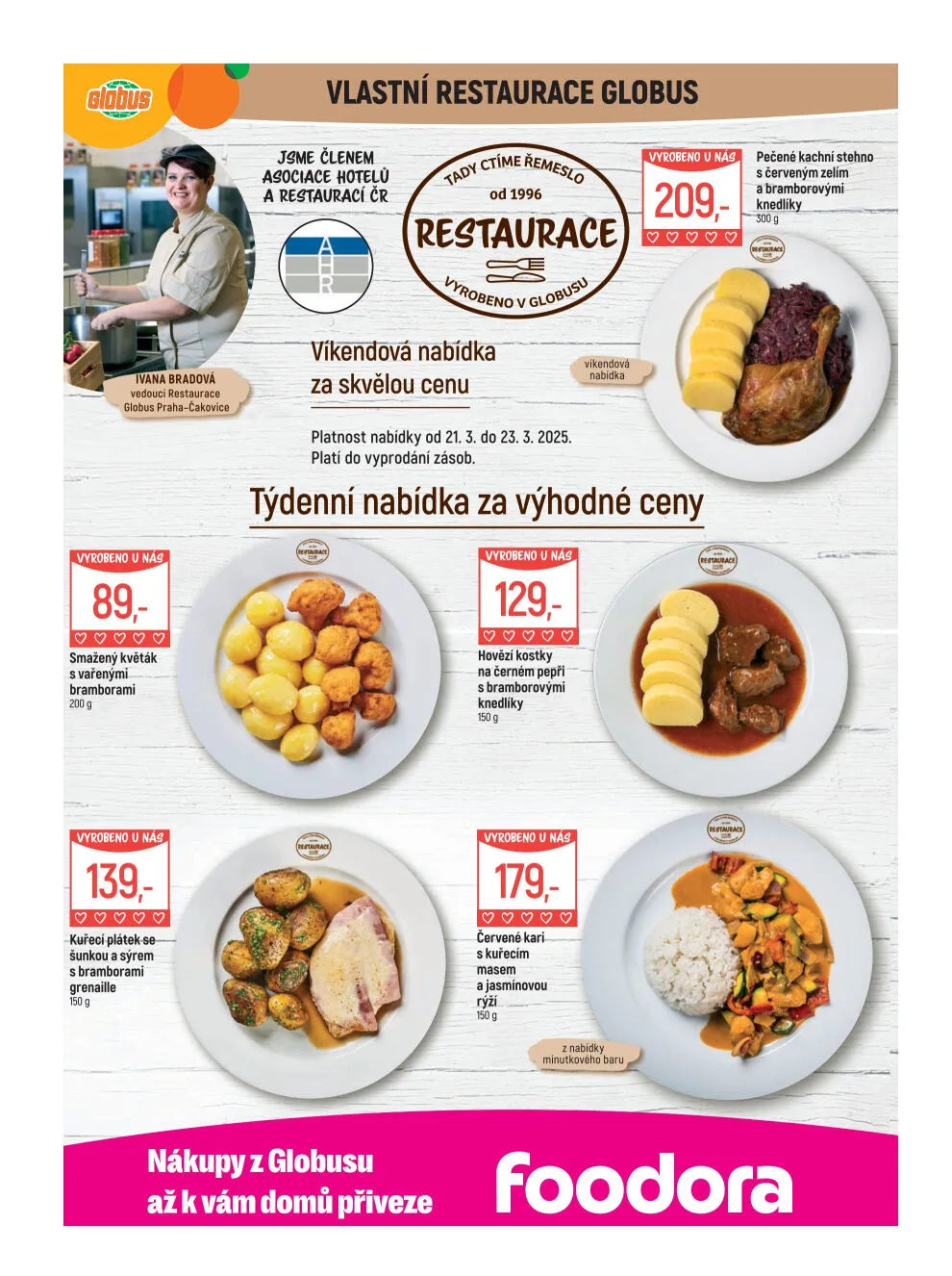 Tato nabídka platí od 21.3. do 23.3.2025, nebo do vyprodání zásob. Využijte výhodné ceny a objednejte si jídlo z Globusu, které vám přiveze Foodora přímo domů!