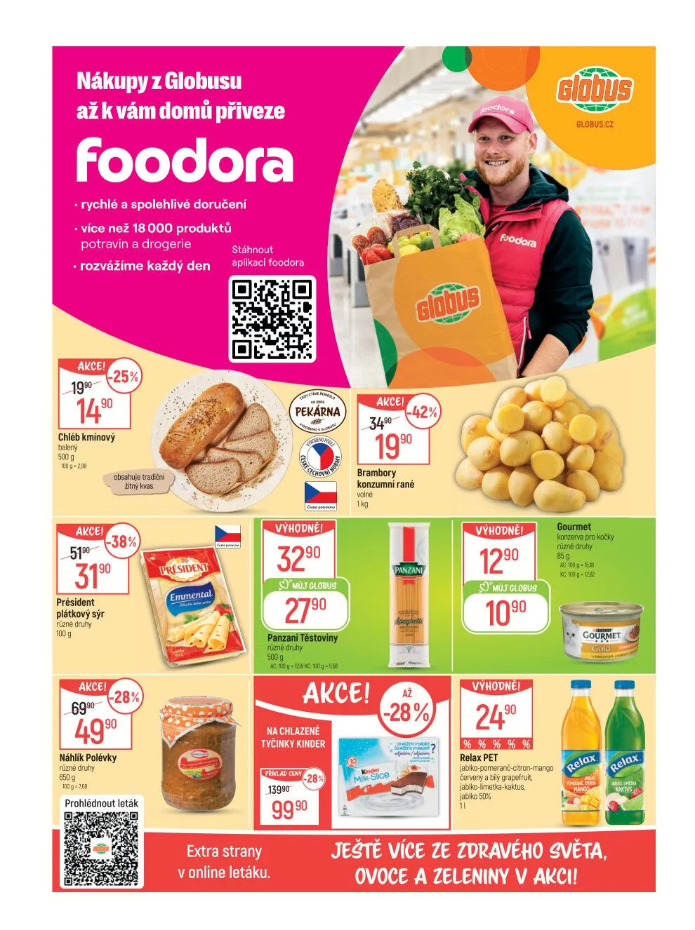 V letáku obchodu Globus najdete širokou nabídku produktů, které si můžete nechat doručit až domů prostřednictvím služby Foodora. Nabízíme více než 18 000 produktů, včetně potravin a drogerie, a to každý den.