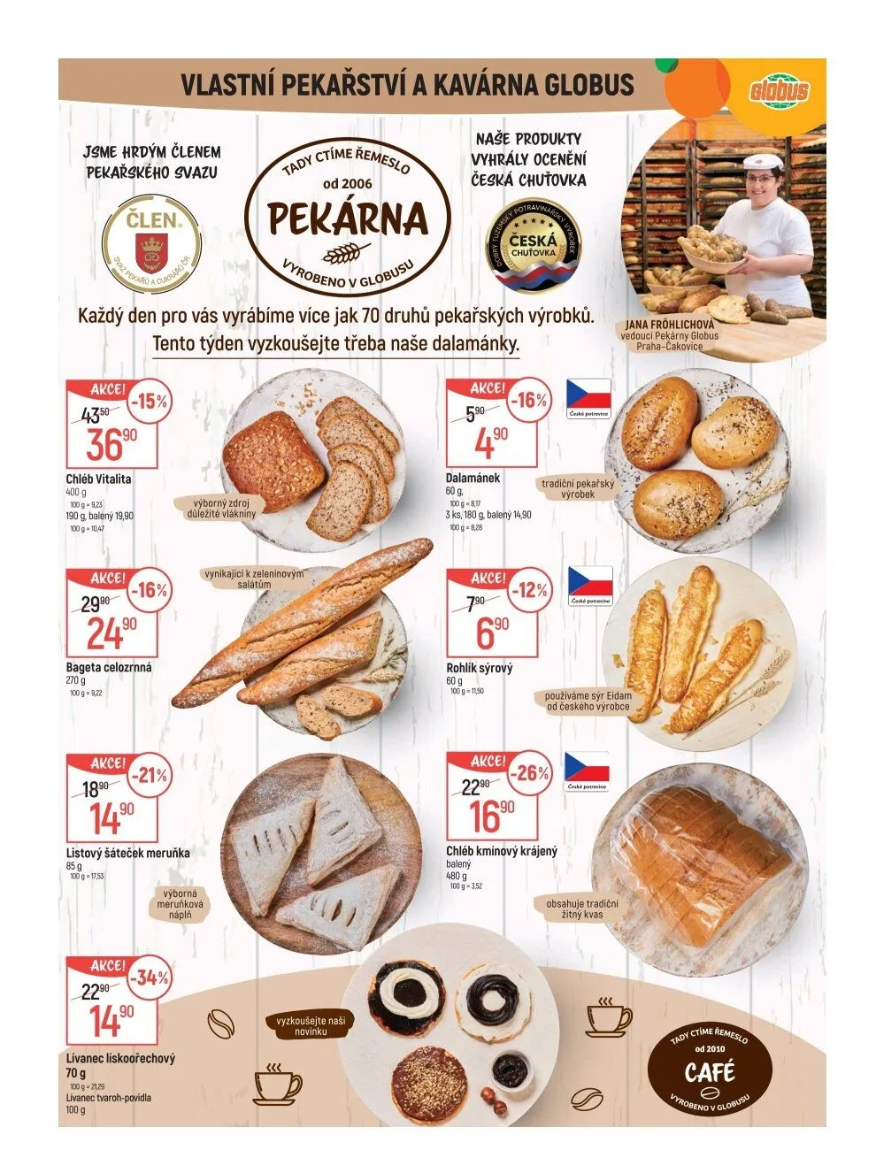 V našem vlastním pekařství a kavárně Globus vám s hrdostí nabízíme širokou škálu pekařských výrobků. Od roku 2006 ctíme tradici kvalitního pečení a naše produkty byly oceněny za svou vynikající chuť. Každý den pro vás vyrábíme více než 70 druhů pekařských výrobků. Tento týden doporučujeme vyzkoušet naše lahodné dalamánky.