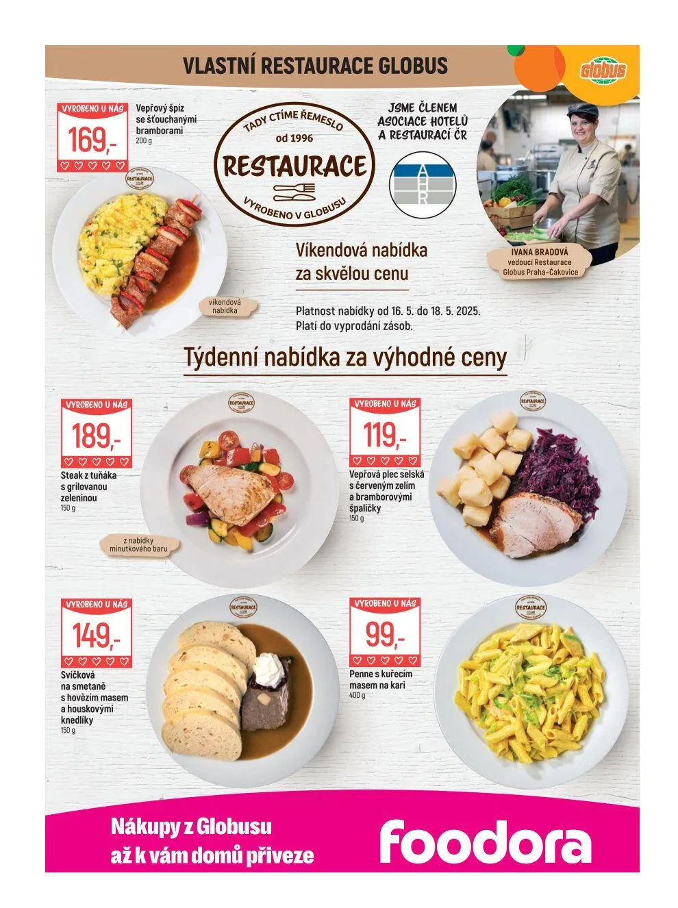 V letáku obchodu Globus najdete skvělou víkendovou nabídku, která platí od 16.5. do 18.5. 2025, do vyprodání zásob.
