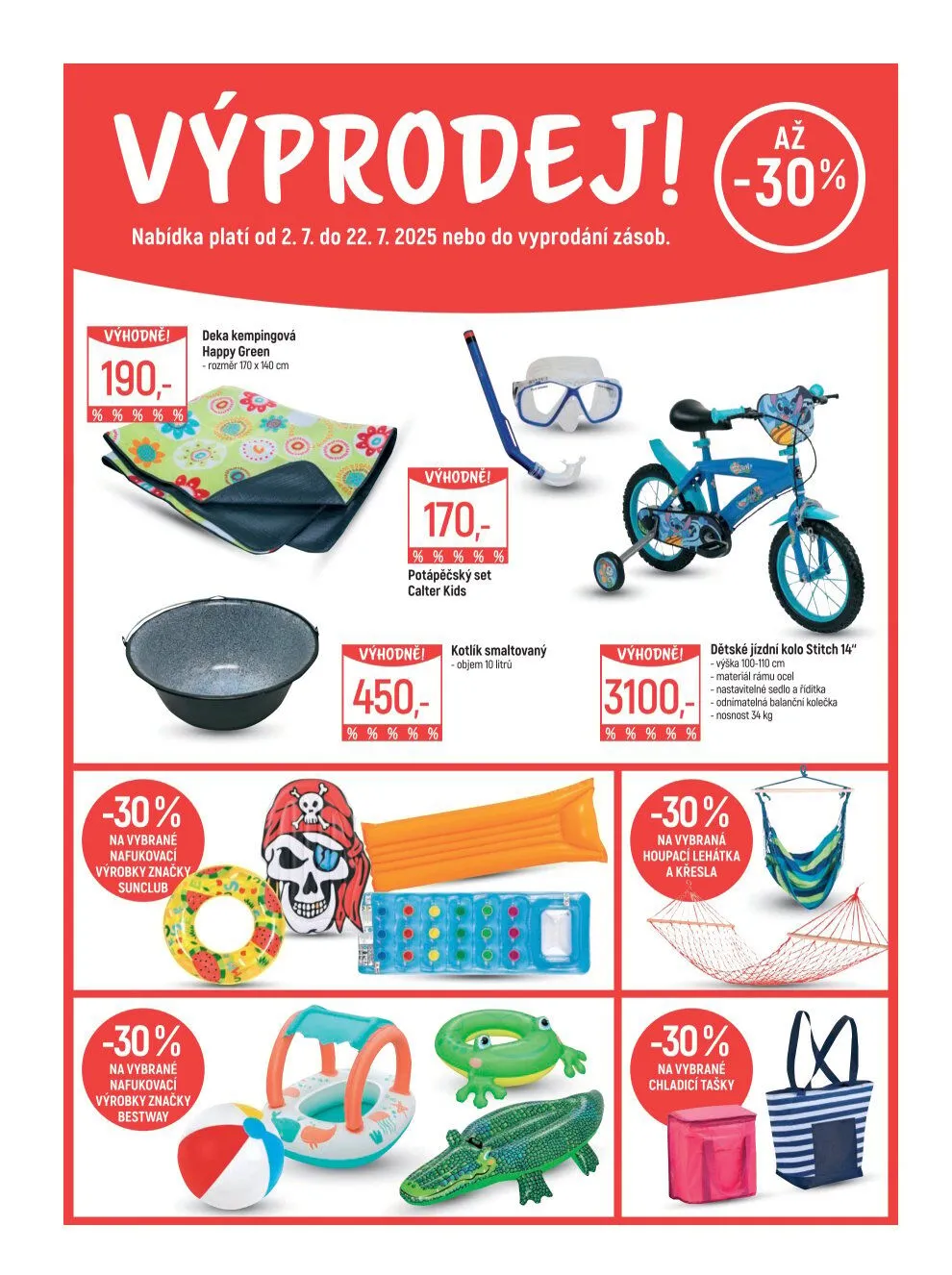 V letáku obchodu Globus najdete skvělé nabídky na vybrané nafukovací výrobky značky Sunclub a Bestway, které jsou nyní za výhodné ceny. Dále si můžete pořídit kempingovou deku Happy Green o rozměrech 170 x 140 cm za 170,- Kč. Pro malé dobrodruhy je k dispozici potápěčský set Calter Kids za 450,- Kč. Nezapomeňte také na smaltovaný kotlík s objemem 10 litrů za 310,- Kč. Pro děti nabízíme jízdní kolo Stitch 140, které je vhodné pro výšku 100-110 cm a má nastavitelné sedlo a odnímatelná balanční kolečka, za cenu 3100,- Kč. Využijte také akce na vybraná houpací lehátka, křesla a chladicí tašky!
