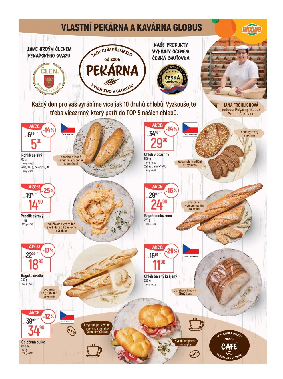 V obchodě Globus najdete širokou nabídku čerstvých pekárenských výrobků, které denně vyrábíme s láskou a péčí. Naše pekárna se pyšní více než 10 druhy chlebů, mezi nimiž vyniká vícezrnný chléb, který patří do top 5 našich nejoblíbenějších produktů.