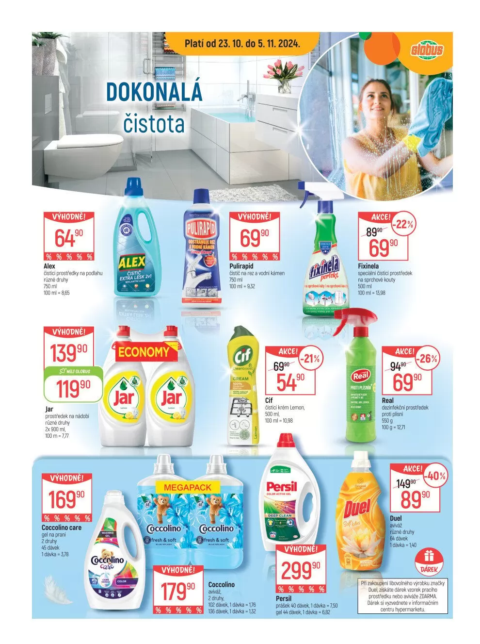 V letáku obchodu Globus najdete skvělé akce na širokou škálu čisticích a pracích prostředků.