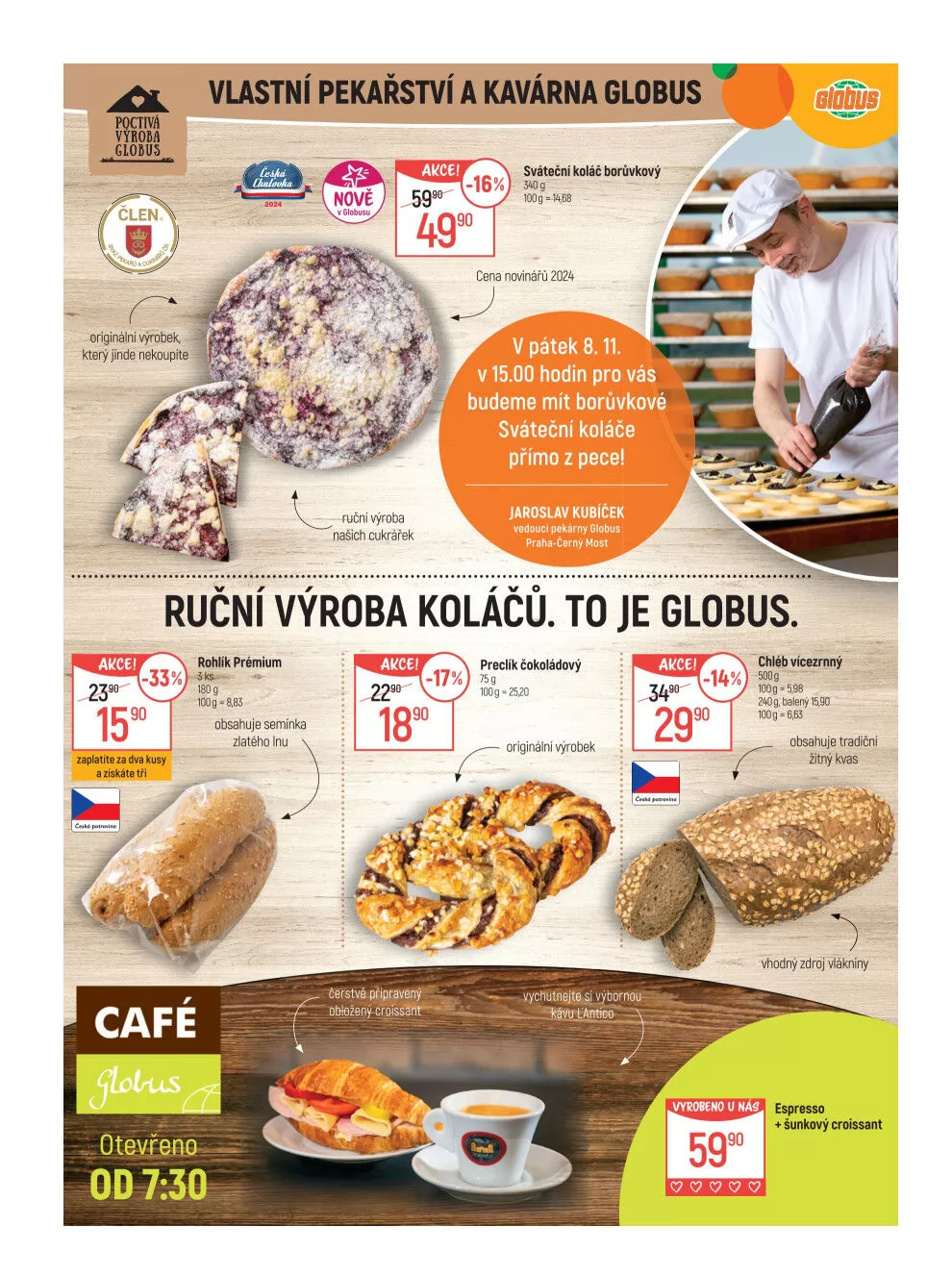 Navštivte naši pekárnu a kavárnu Globus a vychutnejte si čerstvé produkty přímo z pece!