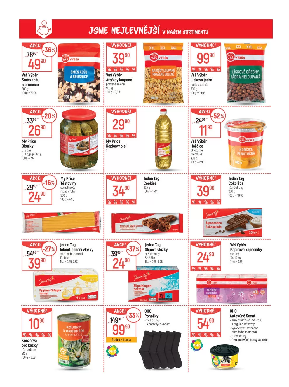 Mezi nimi je směs kešu a brusnic za skvělou cenu, okurky, těstoviny semolinové a arašidy loupané pražené solené.