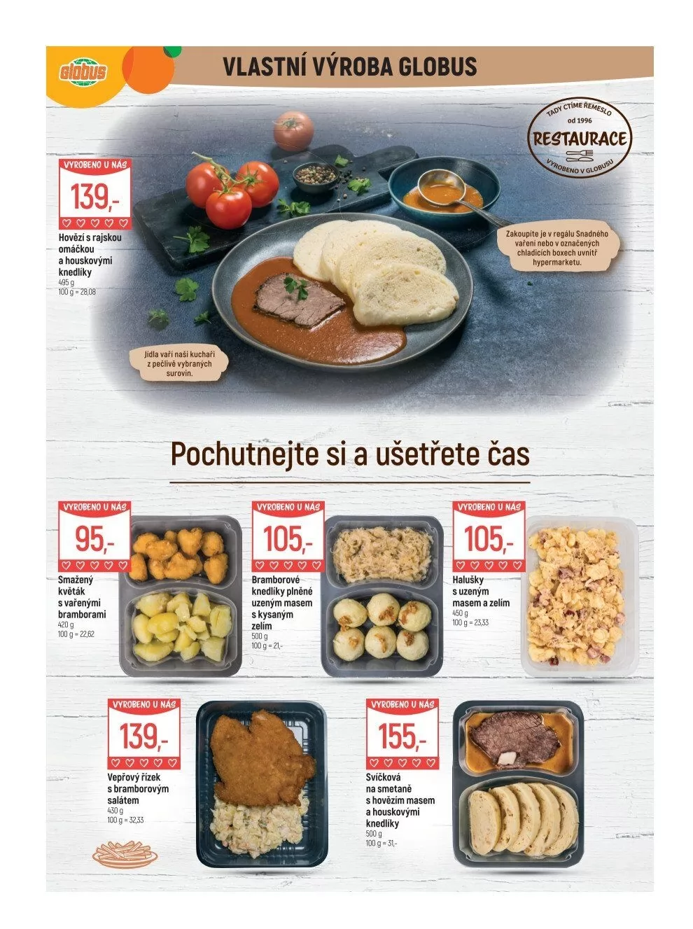 V letáku obchodu Globus najdete širokou nabídku vlastních výrobků, které potěší vaše chuťové pohárky.