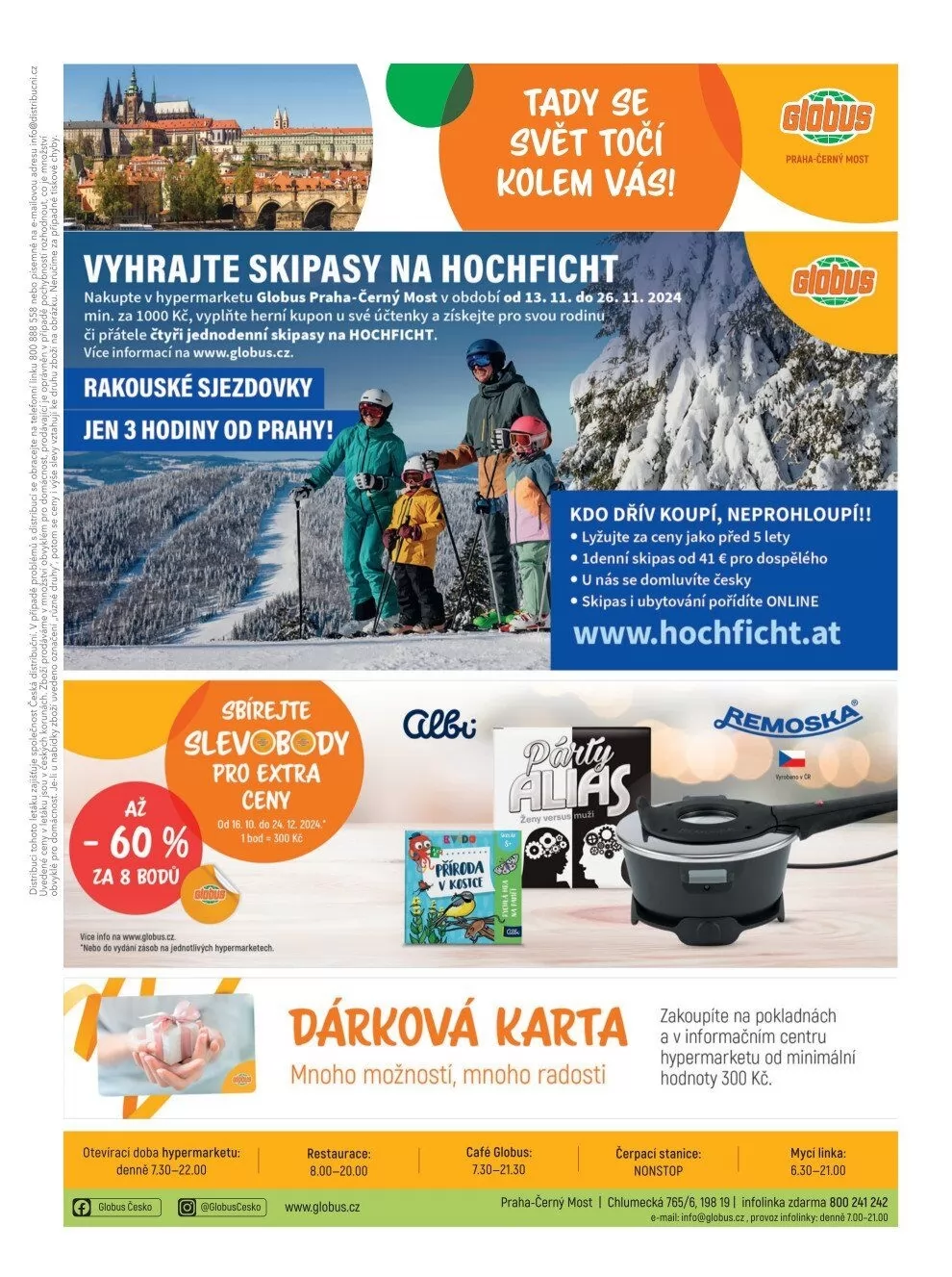 Nakupte v hypermarketu Globus Praha-Černý Most od 13.11. do 26.11. 2024 a získejte šanci vyhrát skipasy na Hochficht. Při nákupu nad 1000 Kč vyplňte herní kupon a můžete získat čtyři jednodenní skipasy pro vaši rodinu nebo přátele!