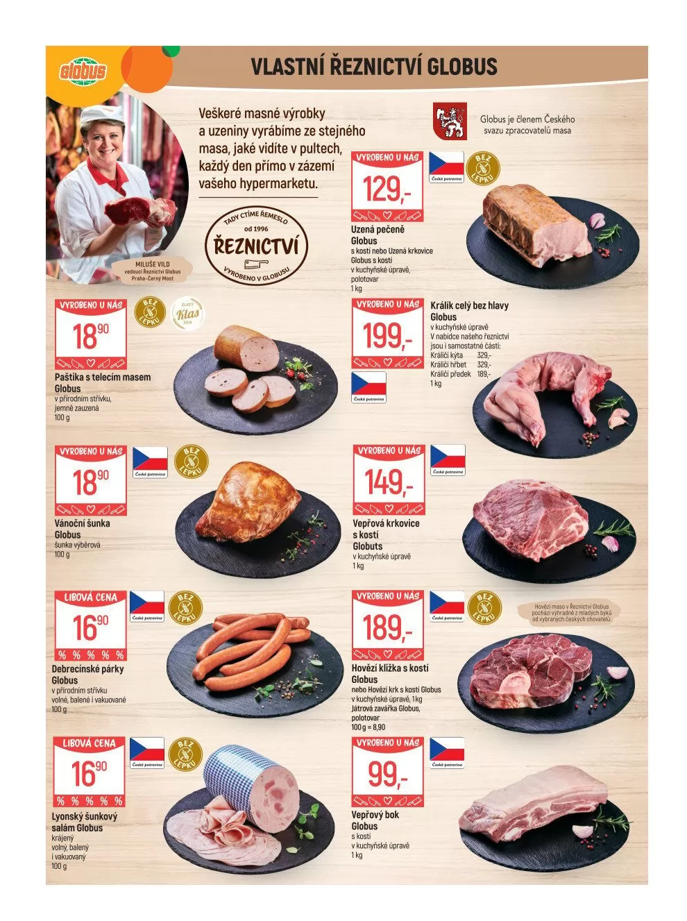 V našem vlastním řeznictví Globus nabízíme široký výběr masných výrobků a uzenin, které vyrábíme z kvalitního masa přímo v zázemí hypermarketu. Jsme hrdým členem českého svazu zpracovatelů masa.