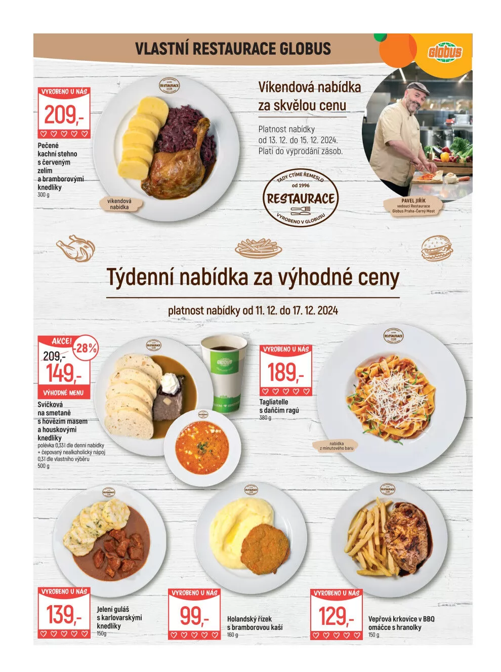 Nabídka platí od 13.12. do 15.12.2024, tak neváhejte a přijďte si vychutnat skvělé jídlo do vlastní restaurace Globus!