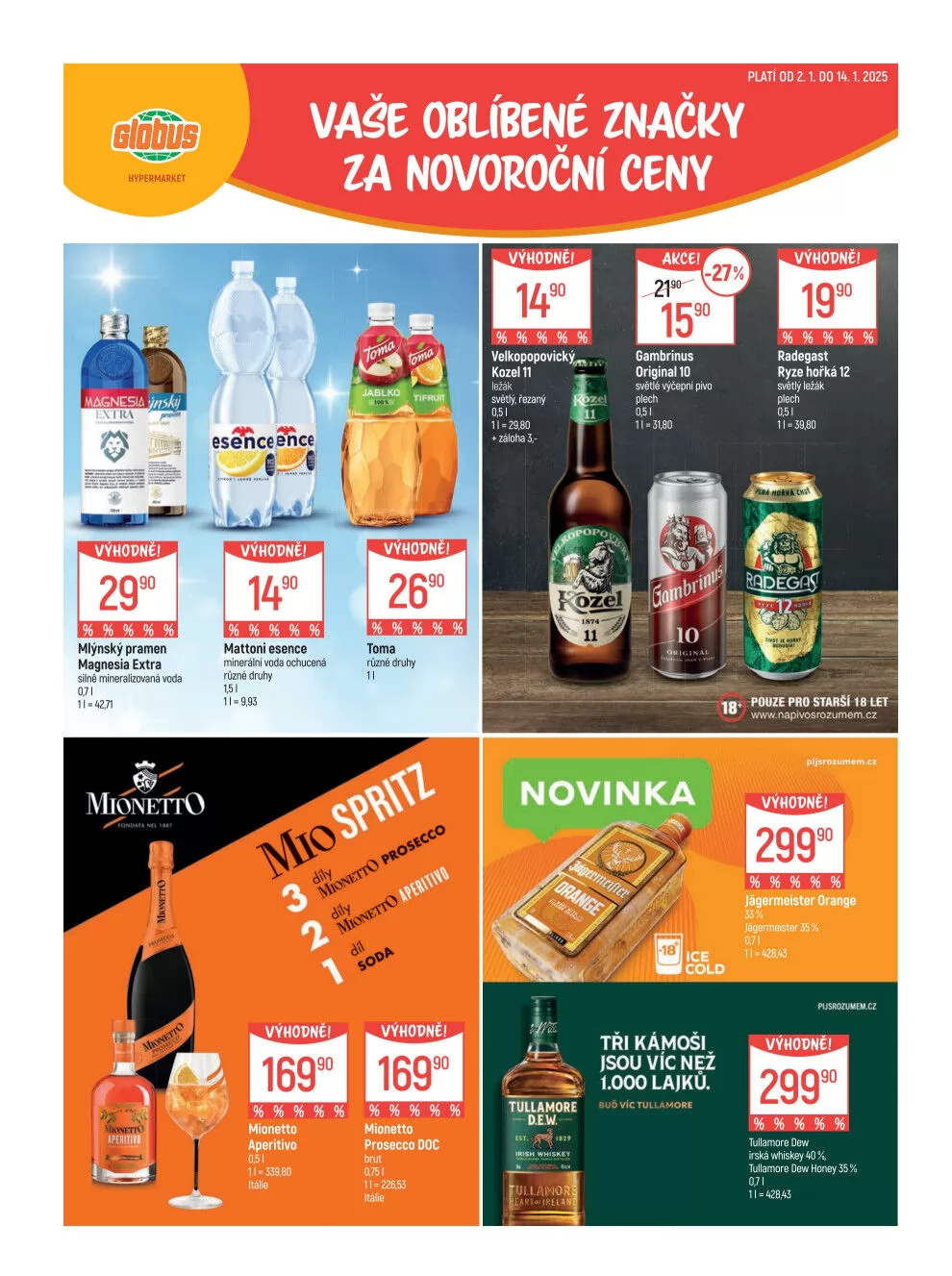 V letáku obchodu Globus najdete širokou nabídku oblíbených značek za novoroční ceny!
