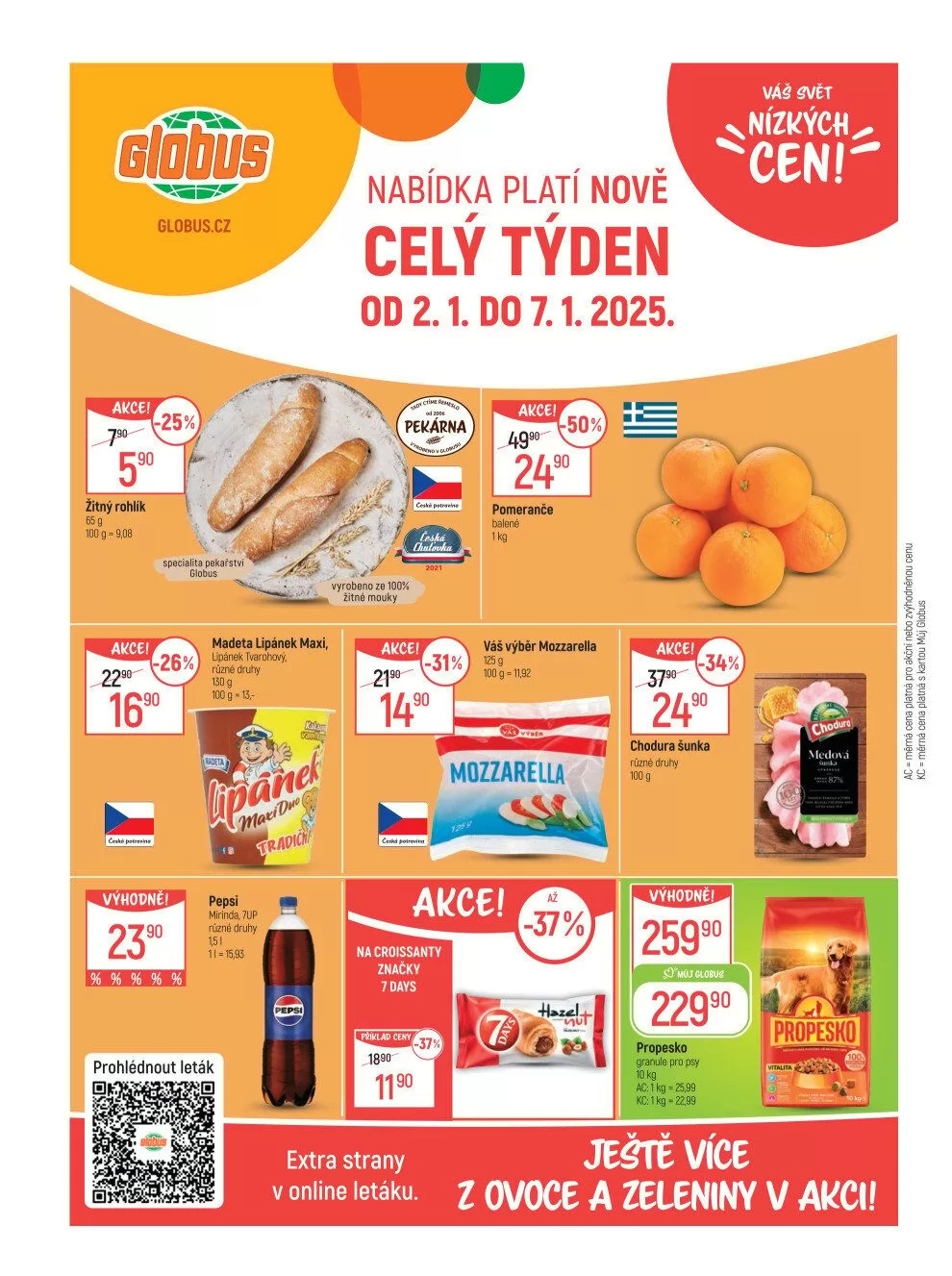 V letáku obchodu Globus najdete širokou nabídku produktů za výhodné ceny. Mezi nimi se objevují žitné rohlíky vyrobené ze 100% žitné mouky, které jsou ideální pro zdravou snídani. Dále si můžete vybrat z balených pomerančů nebo různých druhů mozzarelly, které skvěle doplní vaše pokrmy. Nezapomeňte také na akční nabídku šunky Chodura a oblíbené produkty značky Madeta, jako je Lipánek maxi. V letáku najdete i další zajímavé akce na nápoje, jako jsou Pepsi a Mirinda. Prohlédněte si online leták a objevte ještě více skvělých nabídek na ovoce a zeleninu!