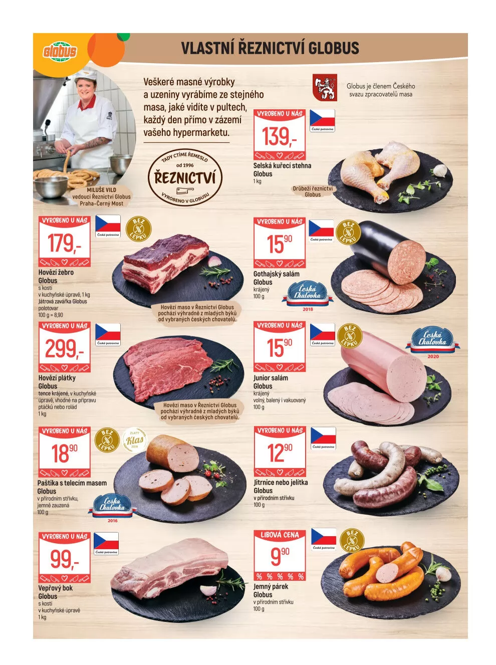 V letáku obchodu Globus najdete širokou nabídku masných výrobků a uzenin, které jsou vyráběny z kvalitního masa.