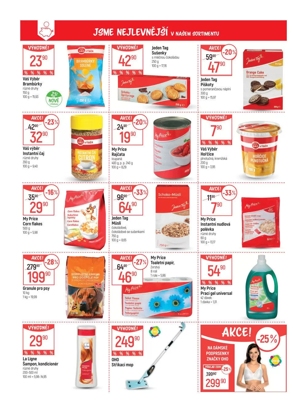 Pro milovníky snídaní máme corn flakes 500 g za 19,90 Kč a granule pro psy 1 kg za 29,90 Kč.