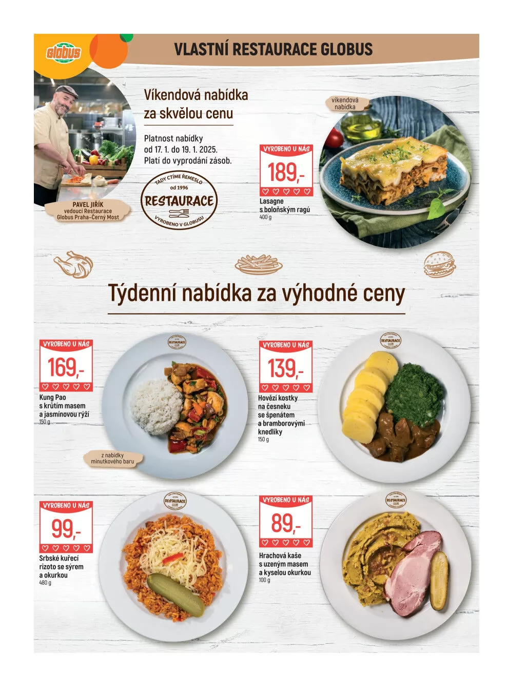 V restauraci Globus připravili skvělou víkendovou nabídku, která potěší každého milovníka dobrého jídla. Od 17. do 19. ledna 2025 si můžete vychutnat lahodné pokrmy za výhodné ceny.