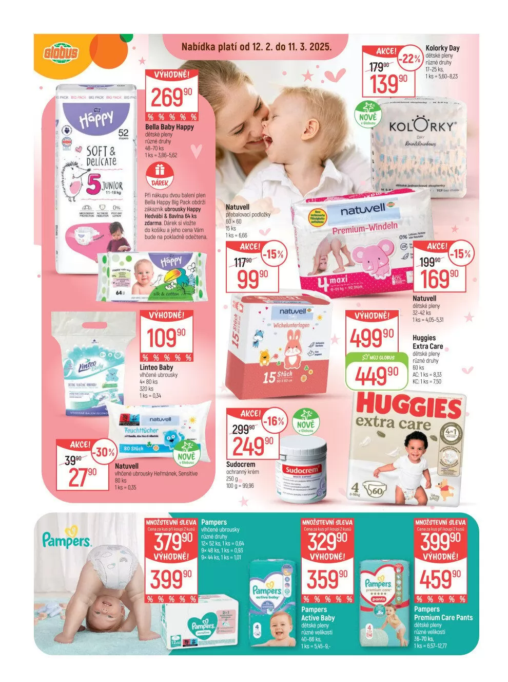 Mezi nejvýhodnějšími nabídkami jsou dětské pleny Bella Baby Happy, které jsou k dispozici v různých druzích. Při nákupu jednoho balení obdržíte zdarma ubrousky Happy.