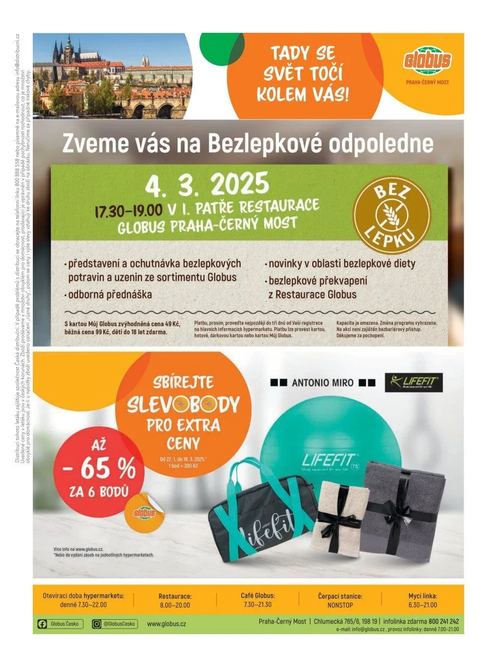 Zveme vás na bezlepkové odpoledne, které se koná 4. března 2025 v 1. patře restaurace Globus od 17:30 do 19:00. Přijďte si vychutnat představení a ochutnávku bezlepkových potravin a uzenin ze sortimentu Globus. Čekají vás novinky v oblasti bezlepkové diety a bezlepkové překvapení z restaurace Globus.