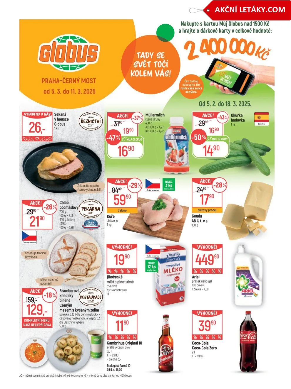 V letáku obchodu Globus na pobočce Praha-Černý Most, platném od 5.3. do 18.3.2025, najdete skvělé akce a nabídky. Při nákupu nad 1500 Kč s kartou Můj Globus máte šanci vyhrát dárkové karty v celkové hodnotě.