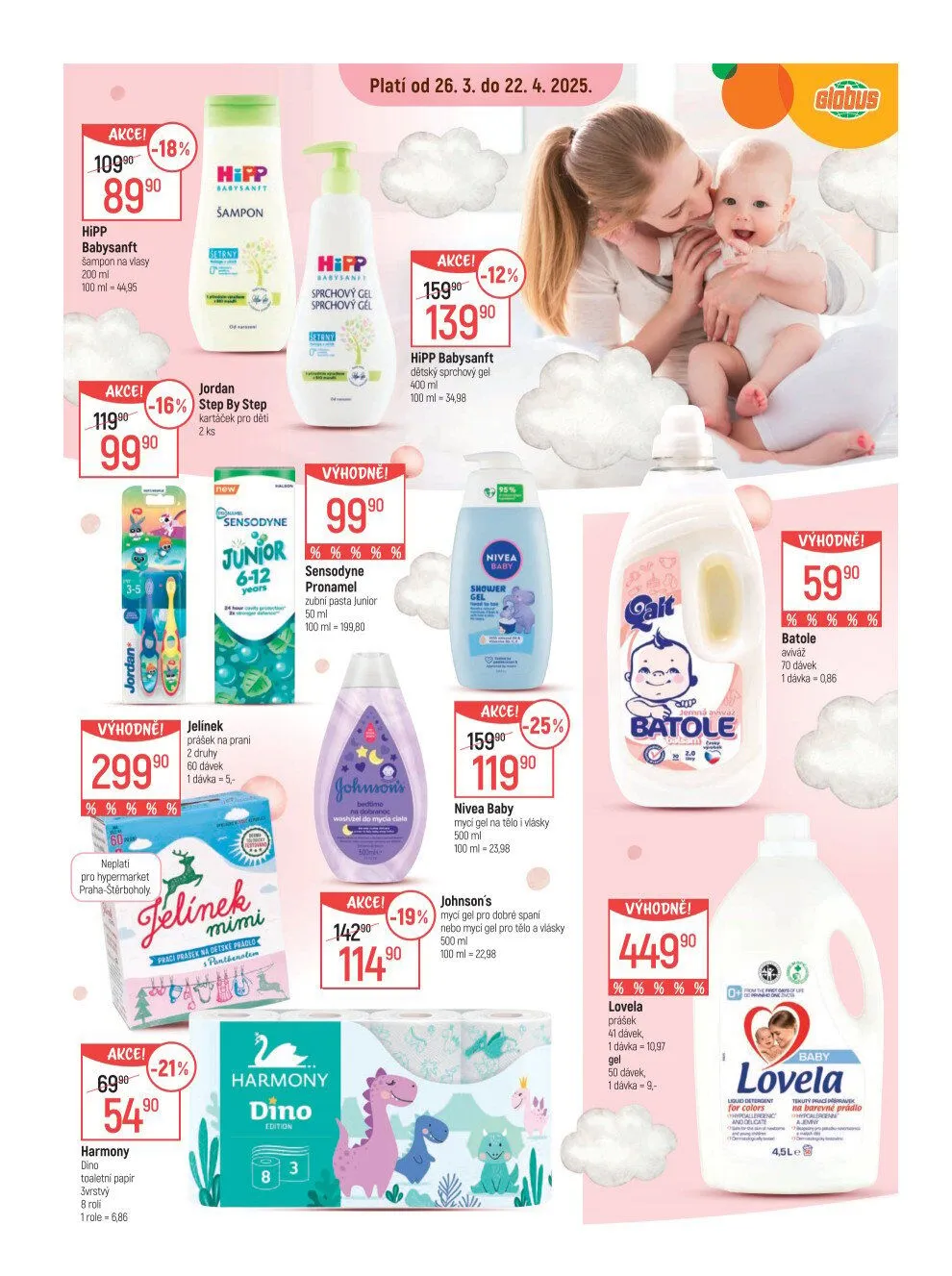 V letáku obchodu Globus najdete širokou nabídku produktů, které potěší celou rodinu. Od 26. března do 22. dubna 2025 si můžete zakoupit toaletní papír Harmony, který obsahuje 8 rolí za skvělou cenu. Pro děti je připraven kartáček Jordan Step by Step a zubní pasta Sensodyne Pronamel Junior.