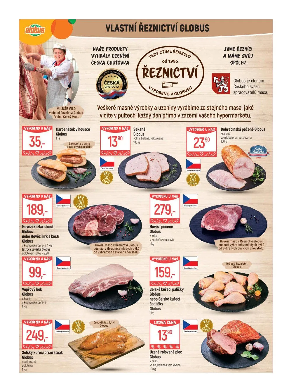 V našem vlastním řeznictví Globus nabízíme širokou škálu masných výrobků, které získaly ocenění za svou kvalitu a chuť. Od roku 1996 ctíme řemeslo a každý den vyrábíme čerstvé uzeniny a maso přímo v zázemí našeho hypermarketu.