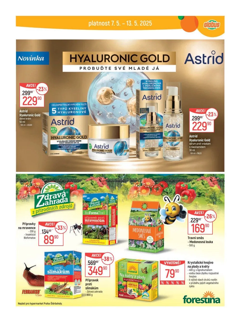 V letáku obchodu Globus najdete skvělé novinky a akční nabídky platné od 7. 5. do 13. 5. 2025. Mezi hlavními produkty se objevuje Astrid Hyaluronic Gold, který probudí vaše mladé já díky unikátní technologii kyseliny hyaluronové. Tento denní krém je nyní za akční cenu 229,90 Kč.