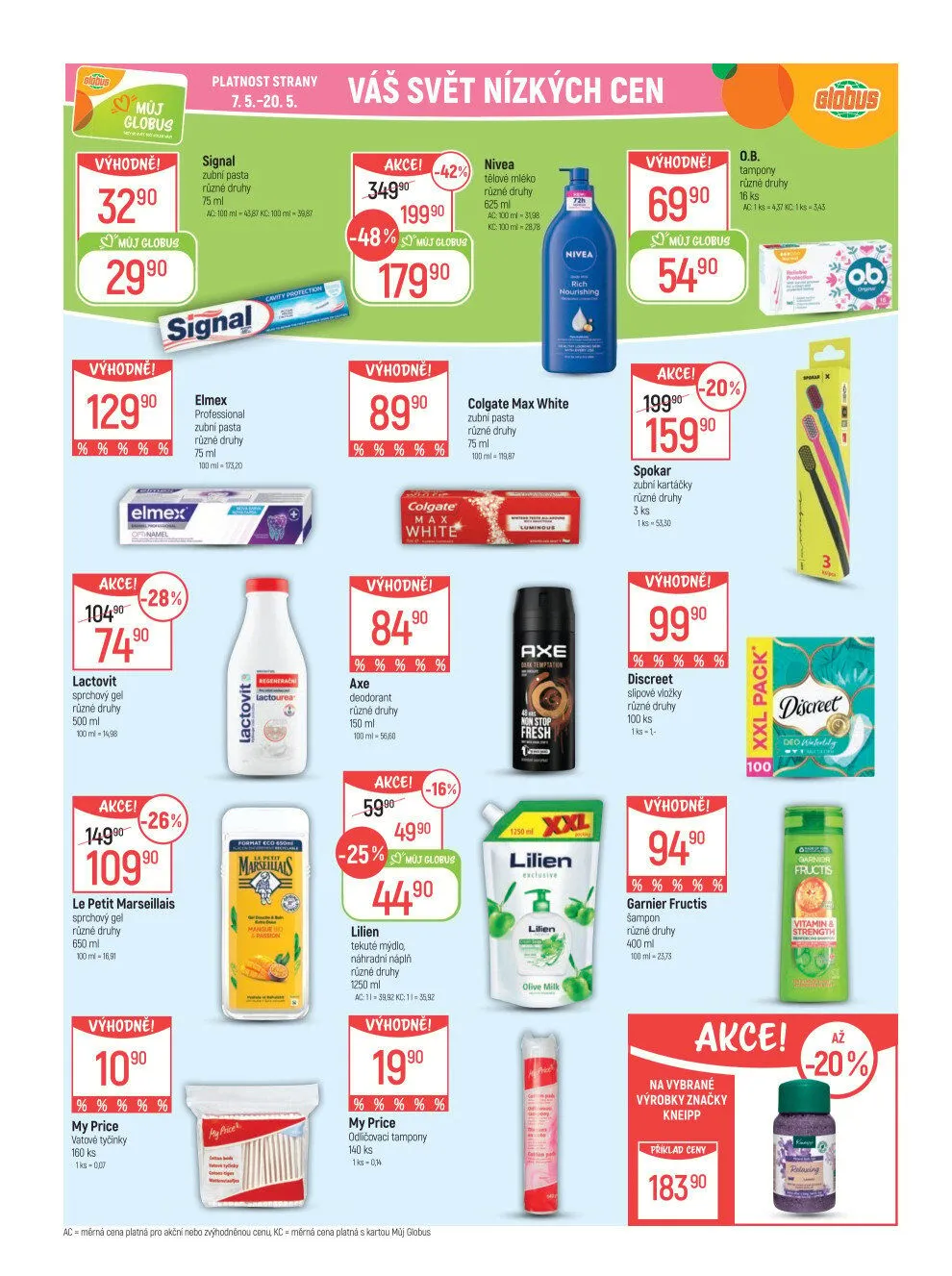 V letáku obchodu Globus najdete širokou nabídku výhodných produktů. Mezi nimi jsou zubní pasty různých značek, jako je Colgate Max White a Elmex Professional, které jsou nyní za skvělé ceny. Dále si můžete vybrat z řady sprchových gelů, včetně Nivea a Le Petit Marseillais.