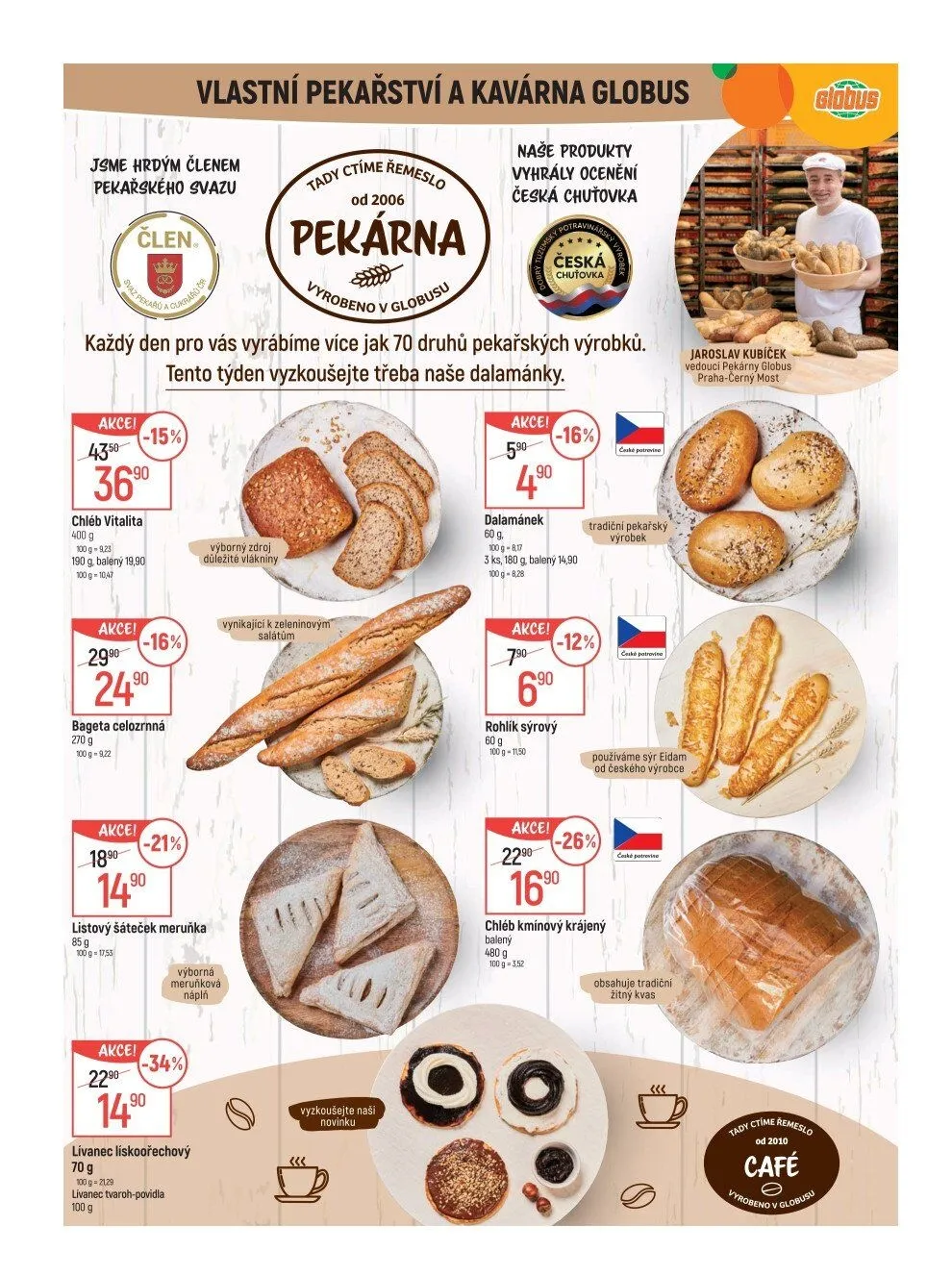 V našem vlastním pekařství a kavárně Globus ctíme tradici a kvalitu od roku 2006. Každý den pro vás vyrábíme více než 70 druhů pekařských výrobků, které získaly ocenění Česká chuťovka. Tento týden doporučujeme vyzkoušet naše lahodné dalamánky.
