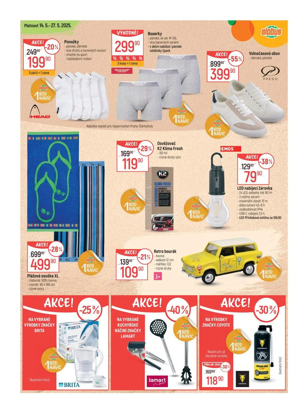 Dále si můžete pořídit volnočasovou obuv pro dámy i pány za 399,90 Kč a nabíjecí LED žárovku s různými režimy svícení za 199,90 Kč.