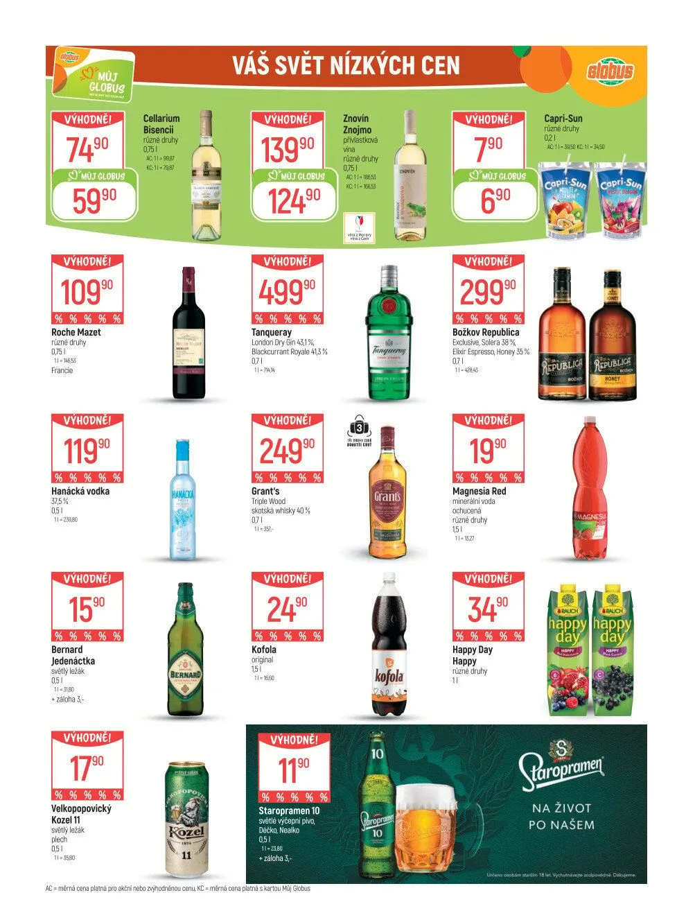 V letáku obchodu Globus najdete širokou nabídku výhodných produktů za nízké ceny. Mezi nimi se objevují oblíbené nápoje jako Hanácká vodka a Bernard jedenáctka světlý ležák. Nechybí ani Velkopopovický Kozel 11 a Tanqueray London Dry Gin. Pro milovníky nealkoholických nápojů je k dispozici Kofola Original a Magnesia Red.