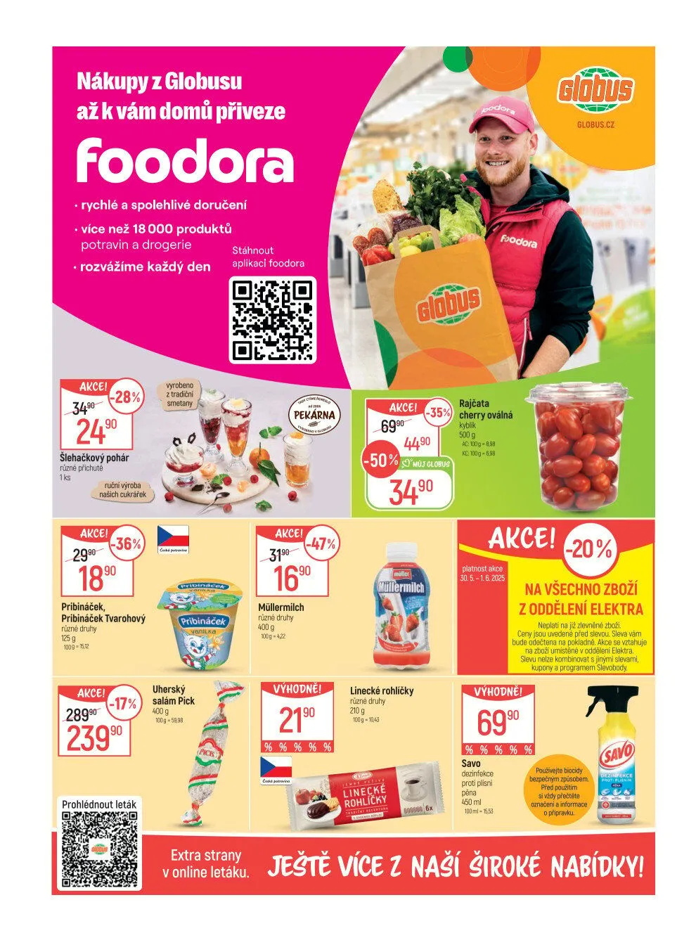 V letáku obchodu Globus najdete širokou nabídku produktů, které si můžete objednat a nechat doručit až domů prostřednictvím služby Foodora. Nabízíme více než 18 000 produktů v kategoriích potravin a drogerie.