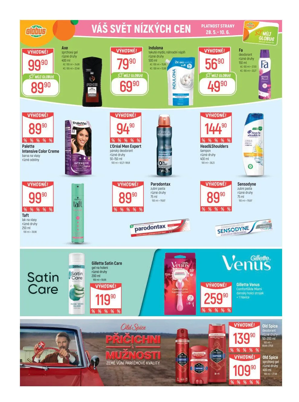 V nabídce najdete i gel na holení Gillette Satin Care a sprchové gely Old Spice v různých druzích. Všechny produkty jsou dostupné do 10. června. Nepropásněte tyto výhodné nabídky!