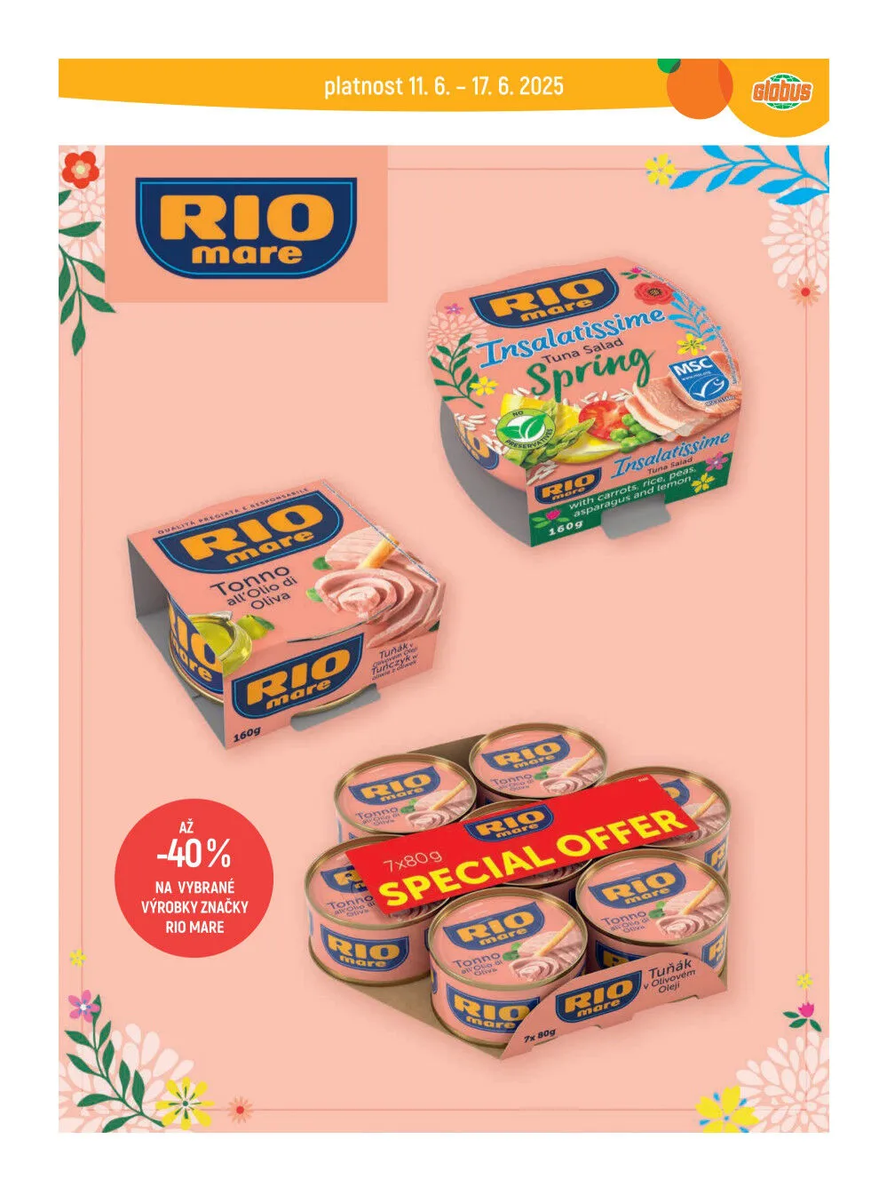 V letáku obchodu Globus najdete skvělé akce na vybrané výrobky značky Rio Mare. Od 11. června můžete využít slevu až 40 % na tyto kvalitní produkty. Nezapomeňte, že akce platí do 17. června 2025. Přijďte si vybrat a ušetřete!