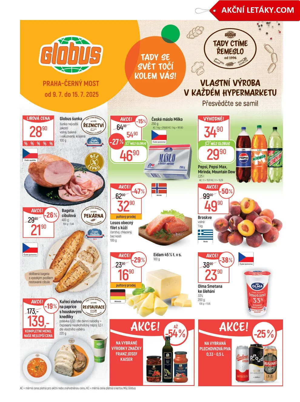 V letáku obchodu Globus najdete skvělé akční nabídky od 9.7. do 15.7.2025. Mezi nejzajímavější produkty patří cibulová bageta za 28,90 Kč, která je ideální jako příloha k vašim pokrmům. Dále si můžete vychutnat kompletní menu s Globus šunkou, která je vyrobena z kvalitních surovin a nyní za skvělou cenu.