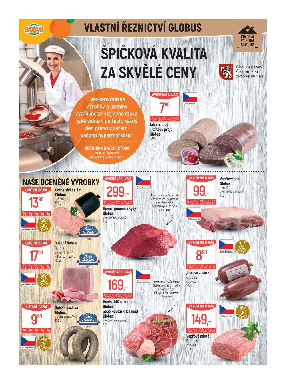 V našem vlastním řeznictví Globus nabízíme spičkové a poctivé masné výrobky, které vyrábíme přímo v zázemí vašeho hypermarketu. Každý den zpracováváme maso, které vidíte na pultech. Naše oceněné výrobky zahrnují jaternicový a jelitový prejt, játrovou zavářku, vepřové mleté maso, gothajský salám, dušenou šunku, selská paštiku a hovězí pečené z kýty. Všechny produkty jsou vyrobeny z kvalitních surovin a s láskou k řemeslu. Navštivte nás a ochutnejte kvalitu, kterou nabízíme!