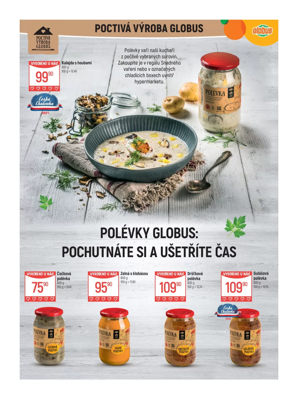 V letáku obchodu Globus najdete širokou nabídku kvalitních polévek, které jsou vyrobeny s láskou a péčí našich kuchařů.