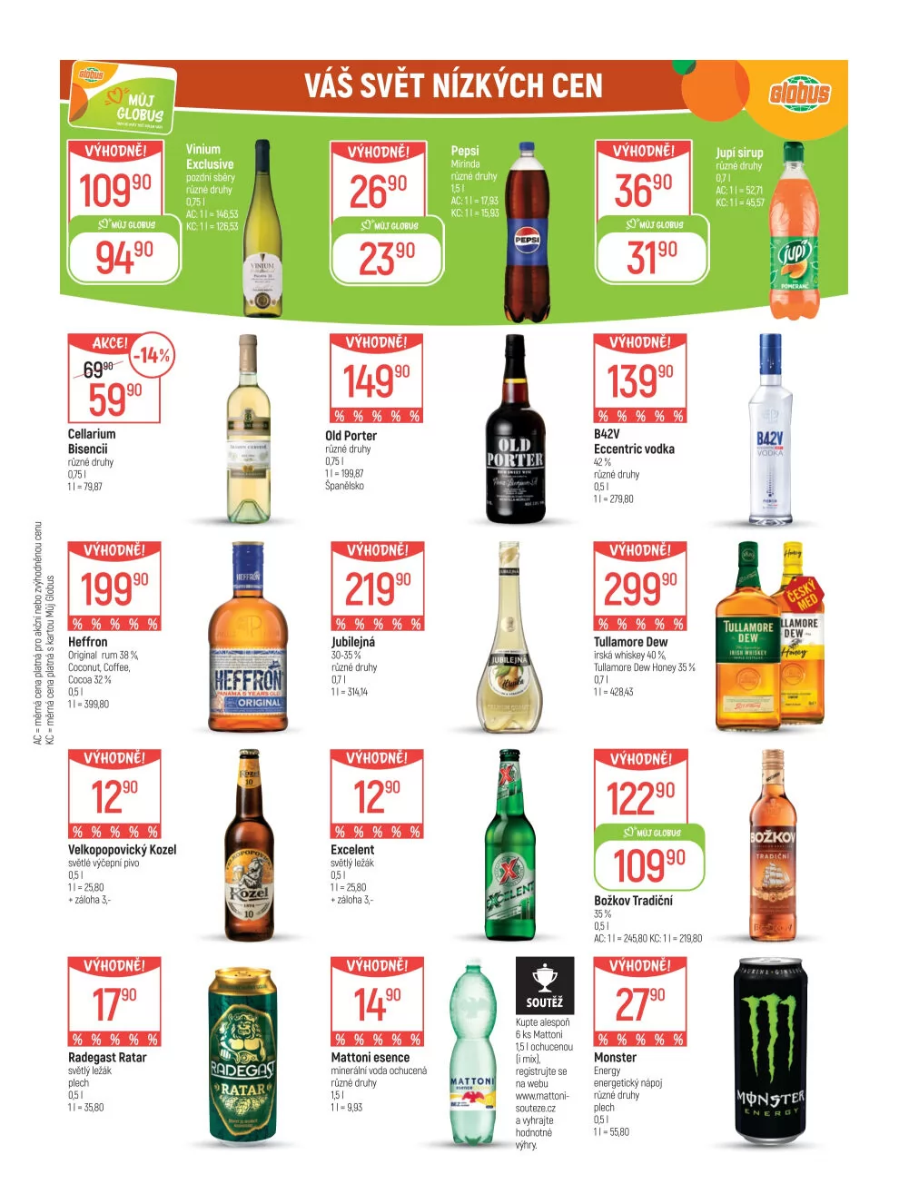 Mezi nimi se objevují různé druhy piva, jako je Velkopopovický Kozel a Radegast, které jsou nyní v akci.
