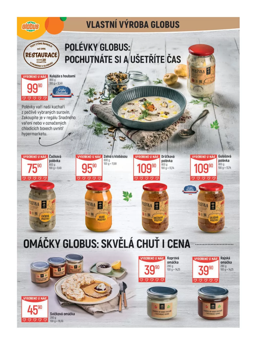V letáku obchodu Globus najdete širokou nabídku vlastních výrobků, které potěší vaše chuťové pohárky.