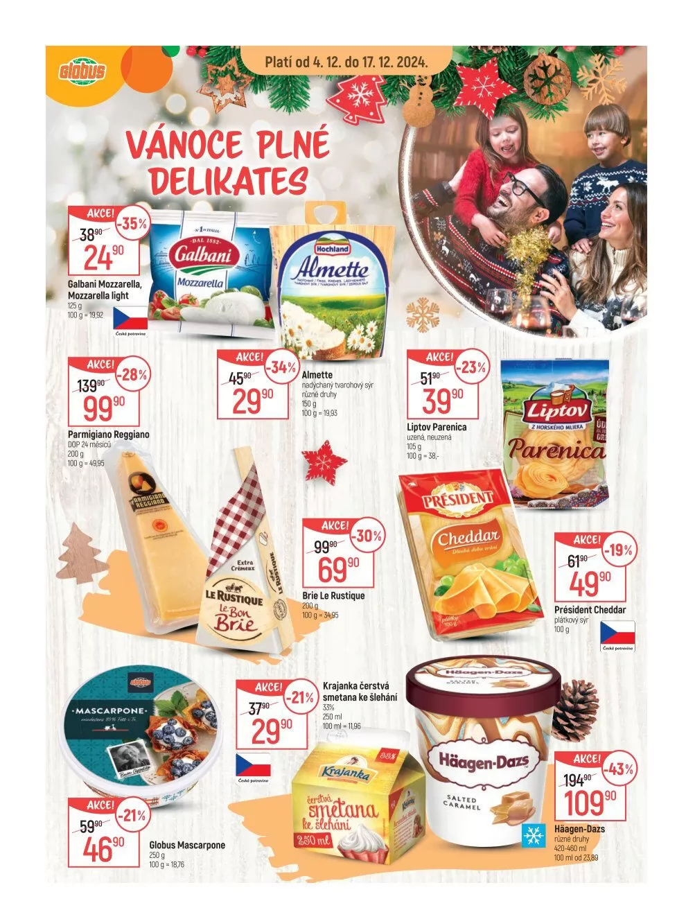 V letáku obchodu Globus, platném od 4.12. do 17.12.2024, najdete skvělé vánoční akce na delikatesy!
