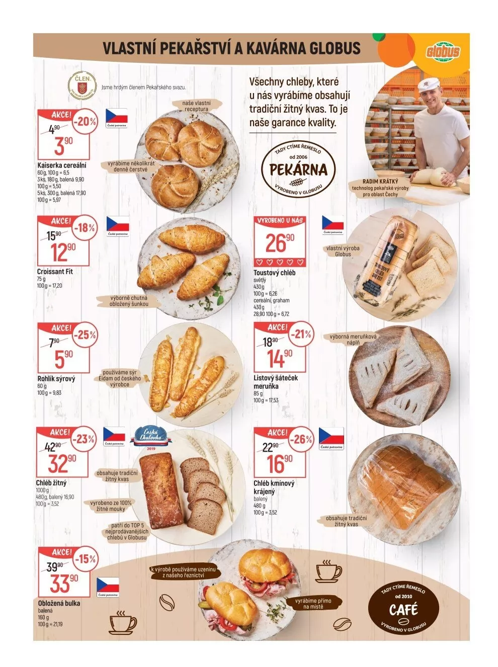 V našem vlastním pekařství a kavárně Globus nabízíme široký výběr čerstvých a chutných produktů.