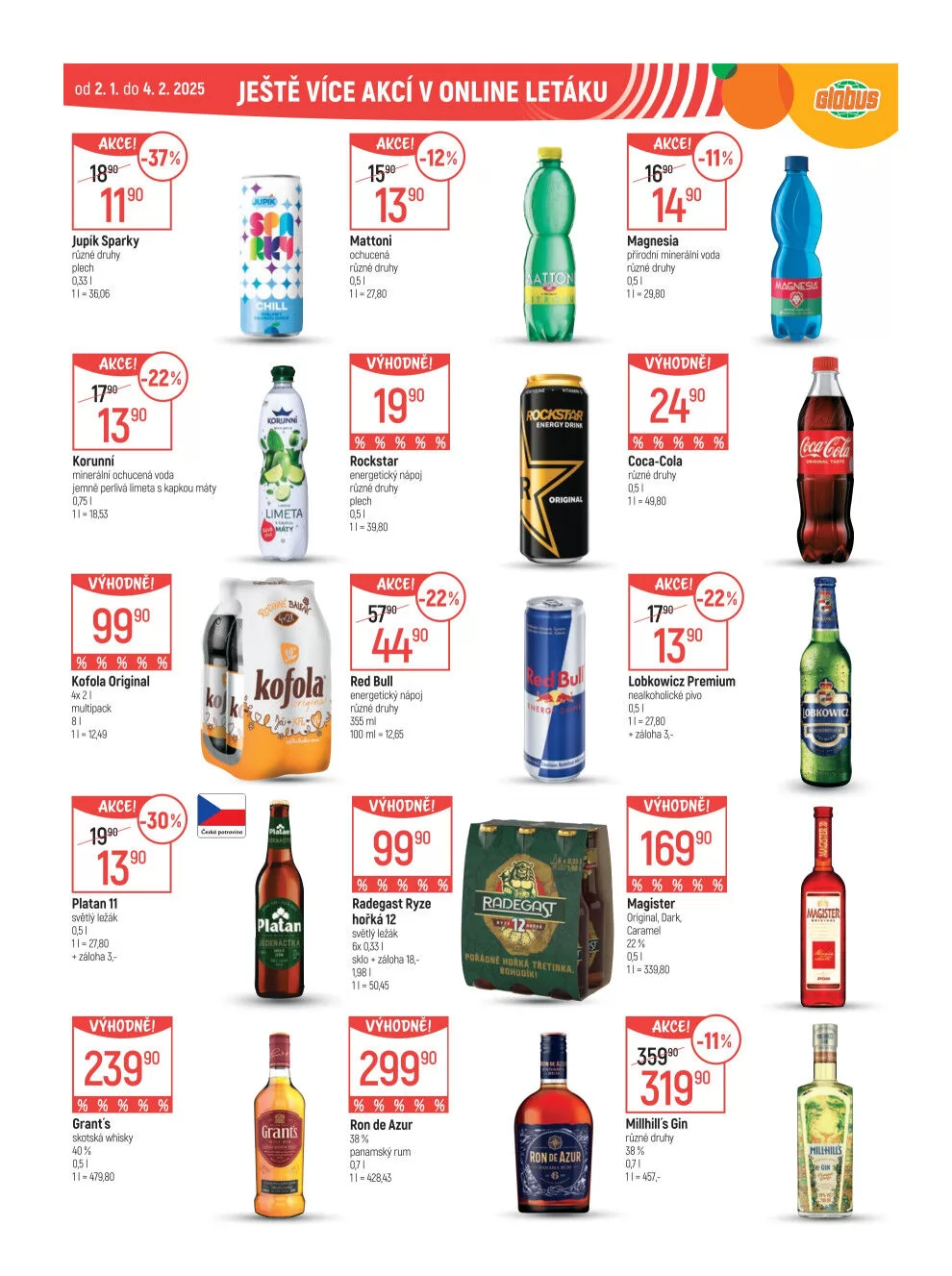 V letáku obchodu Globus od 2.1. do 4.2.2025 najdete skvělé akce na široký sortiment produktů.