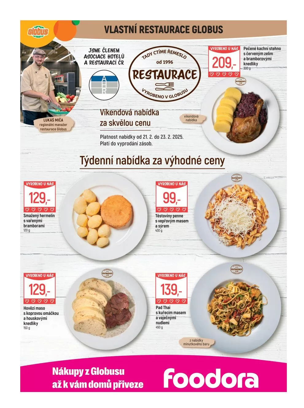 V letáku obchodu Globus najdete skvělou nabídku pokrmů z naší restaurace.