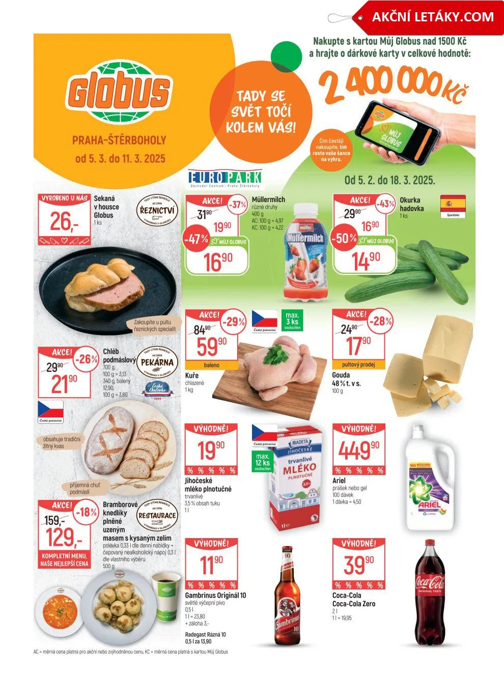 V letáku obchodu Globus najdete skvělé akční nabídky od 5. března do 11. března 2025. Při nákupu nad 1500 Kč s kartou Můj Globus máte šanci vyhrát dárkové karty v celkové hodnotě.