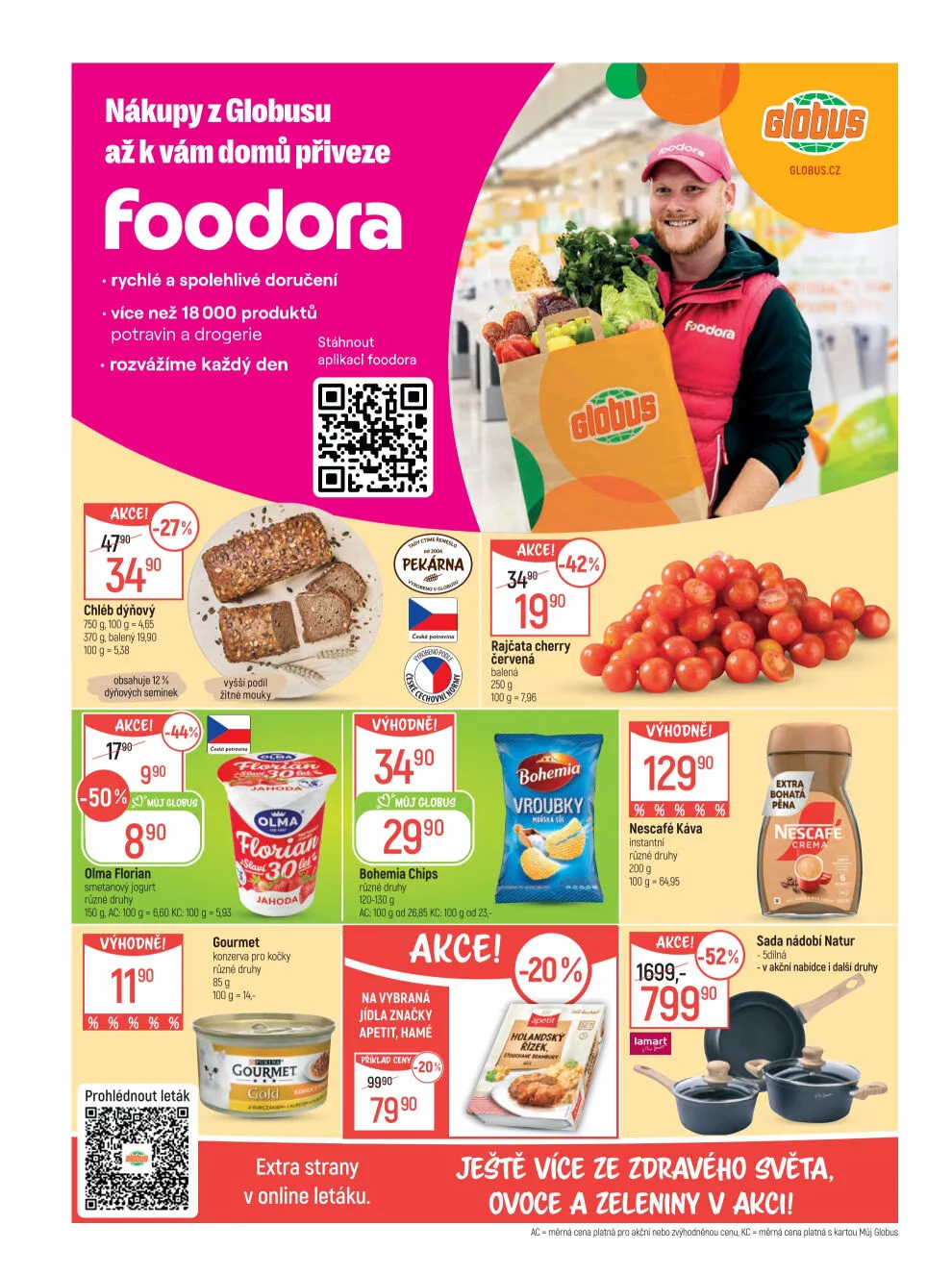 V letáku obchodu Globus najdete širokou nabídku produktů, které si můžete objednat a nechat si je doručit až domů prostřednictvím služby Foodora. Nabízíme více než 18 000 produktů v kategoriích potravin a drogerie.