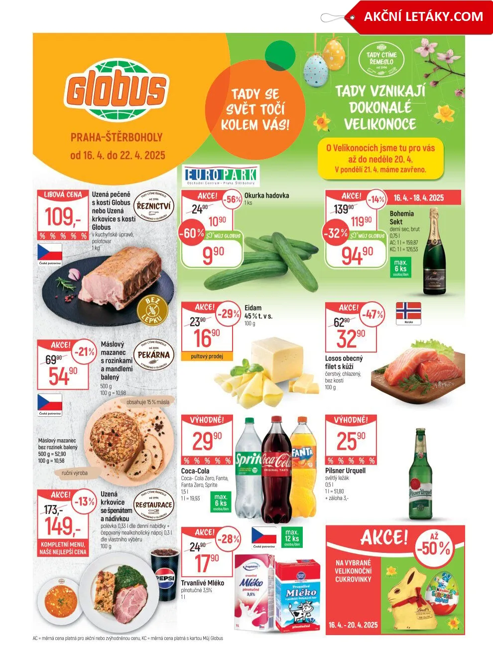 V letáku obchodu Globus Praha-Štěrboholy od 16.4. do 22.4.2025 najdete skvělé akce na široký sortiment produktů. Například okurka hadovka je nyní za skvělou cenu -56%. Uzená pečeně a krkovice s kostí z Globus řeznictví jsou také v akci. Nezapomeňte na lososa obecného, který je k dostání za výhodnou cenu 25,90 Kč za 100 g.