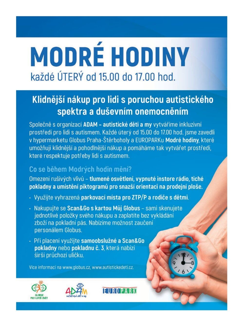 V obchodě Globus jsme zavedli modré hodiny, které se konají každé úterý od 15.00 do 17.00 hod. Tyto hodiny jsou určeny pro lidi s poruchou autistického spektra a duševním onemocněním, aby mohli nakupovat v klidnějším prostředí. Spolupracujeme s organizací Adam, abychom vytvořili inkluzivní prostředí.