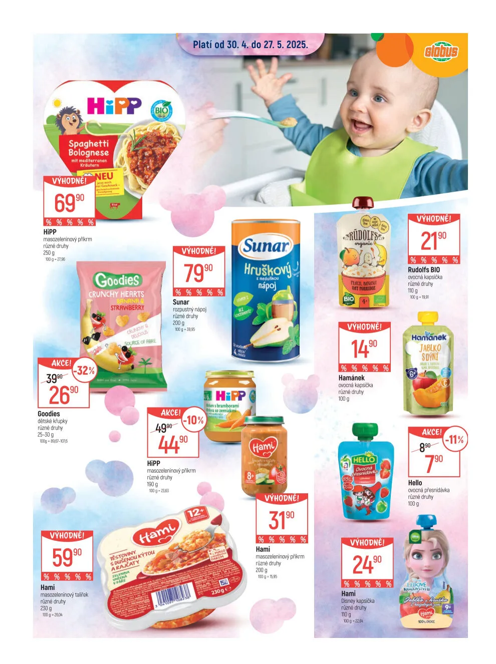 V letáku obchodu Globus najdete širokou nabídku výhodných produktů, které potěší celou rodinu. Od 30. dubna do 27. května 2025 si můžete zakoupit bio spaghetti bolognese, masozeleninové příkrmy značky Hipp a Hami v různých druzích. Děti si přijdou na své s křupkami Goodies a ovocnými kapsičkami Hamánek. Nezapomeňte také na rozpustný nápoj Sunar a chutné příkrmy pro nejmenší. Všechny produkty jsou za skvělé ceny, takže neváhejte a navštivte nás!